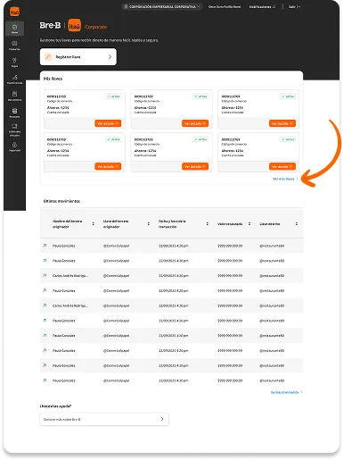 En el menú izquierdo, encontrarás el acceso directo para entrar a Bre-B.