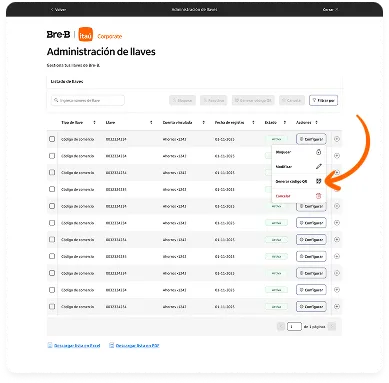 Elige la llave y selecciona la opción “Configurar” y luego “Generar código QR”.